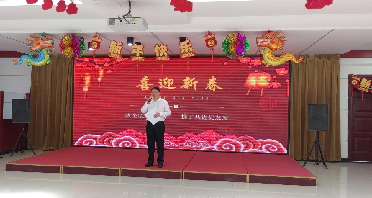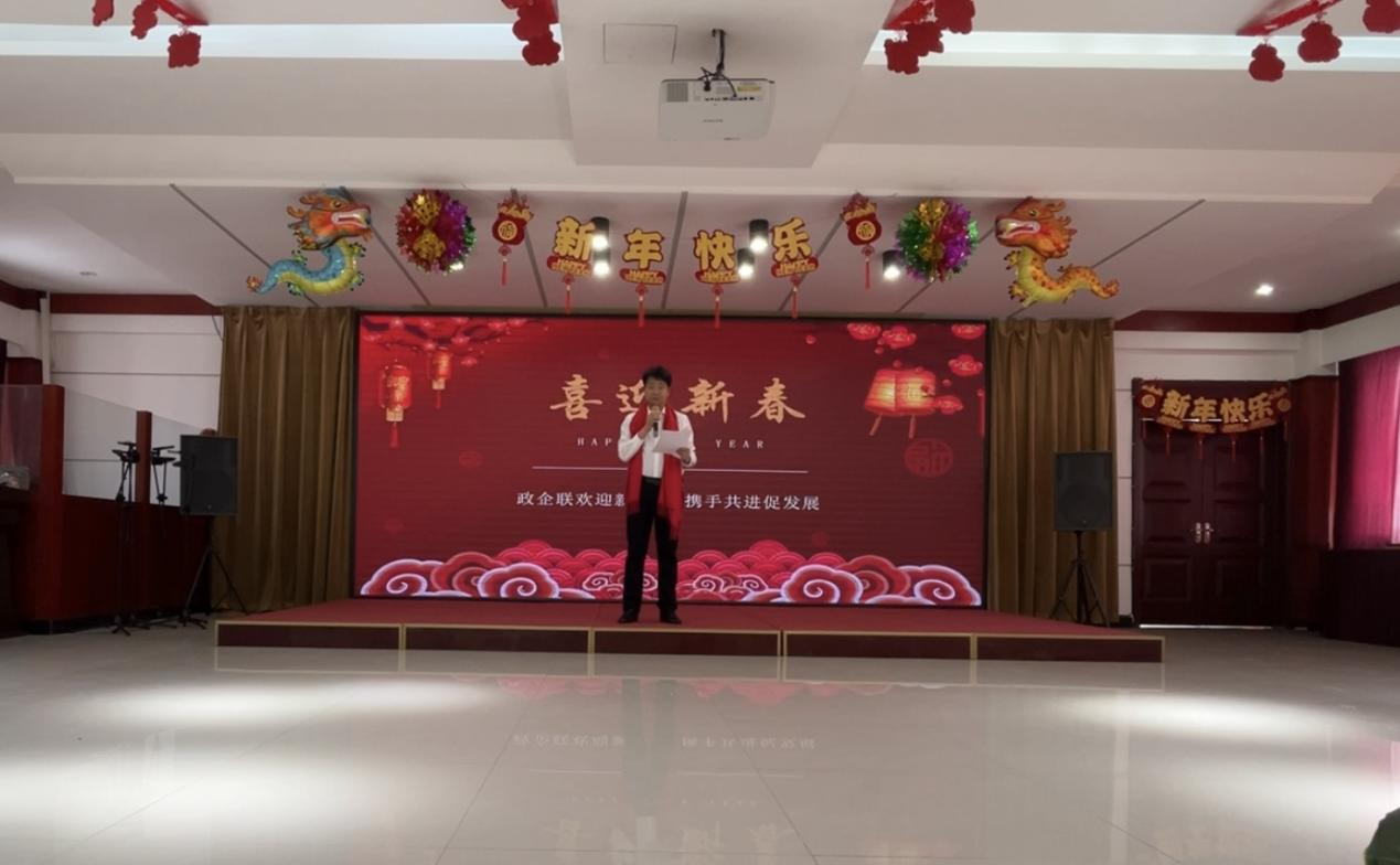 为增强政企互动,加深彼此沟通协作,在龙年春节来临之际,沈阳第一粮食收储有限公司与新民市张家屯镇政府联合举办了“政企联欢迎新春,携手共进促发展”主题联欢会。2月1日下午,双方干部员工共100余人在一收储公司大活动室欢聚一堂。新民市、张家屯镇相关领导,粮油集团和一收储公司班子成员出席活动现场。
